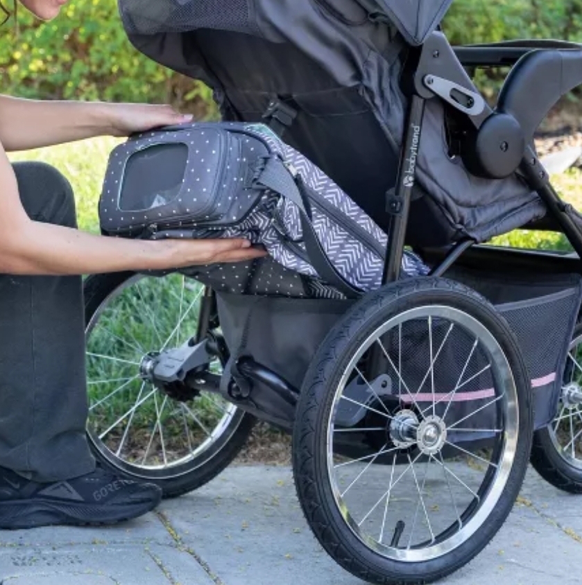 The Baby Trend Expedition Jogger is designed with style and security for you and your child. It has a parent tray with 2 cup holders and covered storage compartment and an extra-wide ergonomically shaped rubber grip for comfortable handling. The child’s tray has 2 cup holders to keep beverages and snacks handy for your little one. The jogger also includes a 5-point harness and a rotating canopy with visor that can be adjusted to shield your child from the elements. It has a convenient storage basket under the seat, offering ample space to carry feeding bottles or other baby essentials. The stroller easily folds into a compact unit for easy storage. Its front wheel swivels for easy maneuvering. The wheel can also be locked to offer in-line performance. This travel system includes the all-new EZ-Lift 35 Infant Car Seat with the integrated Side Grip handle for ergonomic carrying.