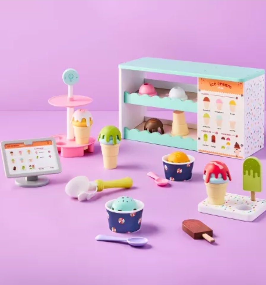 This Ice Cream Shop Play Set from Gigglescape™ will activate your little one’s imagination and fine motor skills. Made from plastic and wood, this play set includes 29 colorful pieces to scoop and stack with ice cream balls, an ice cream display, a menu and more. Create and run this ice cream shop with them to help build physical and mental developmental skills.