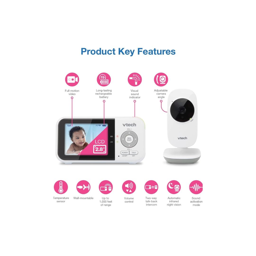 Easy Set-up Plug and Play – The parent unit and the camera are configured for monitoring right out of the box – no pairing or connections required. The camera can be set on desk top or wall mounted.