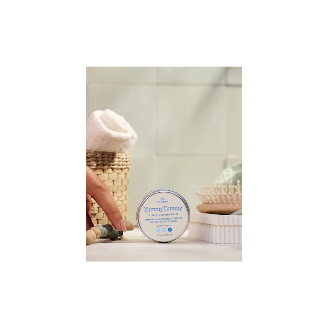 Nurture Balm is your ultra-soothing spot treatment for tender, cracked, or overworked skin. It’s designed for the areas that need the most care — nipples, elbows, scars, or any dry, delicate spots. Made with 100% natural ingredients including lanolin, beeswax, shea butter, and vitamin E, this thick, nourishing balm melts into skin to calm irritation, lock in moisture, and support recovery. Safe for breastfeeding and gentle enough for baby, it’s a no-wipe, no-worry way to restore softness where it matters most.